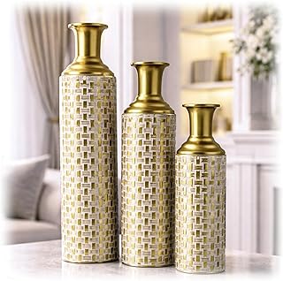 Vasen und Schalen in Gold bringen Eleganz auf Ihre Tische und Ablagen. Selbst ohne Blumen oder Inhalt sind diese Objekte eigenständige Kunstwerke, die Ihrem Raum Tiefe und Interesse verleihen. Eine goldene Vase mit frischen grünen Zweigen schafft einen wunderbaren Kontrast, der beide Elemente hervorhebt.