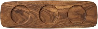 Ein flaches Tablett mit verschiedenen Elementen wie Kerzen unterschiedliche Höhen, kleinen Vasen oder dekorativen Objekten